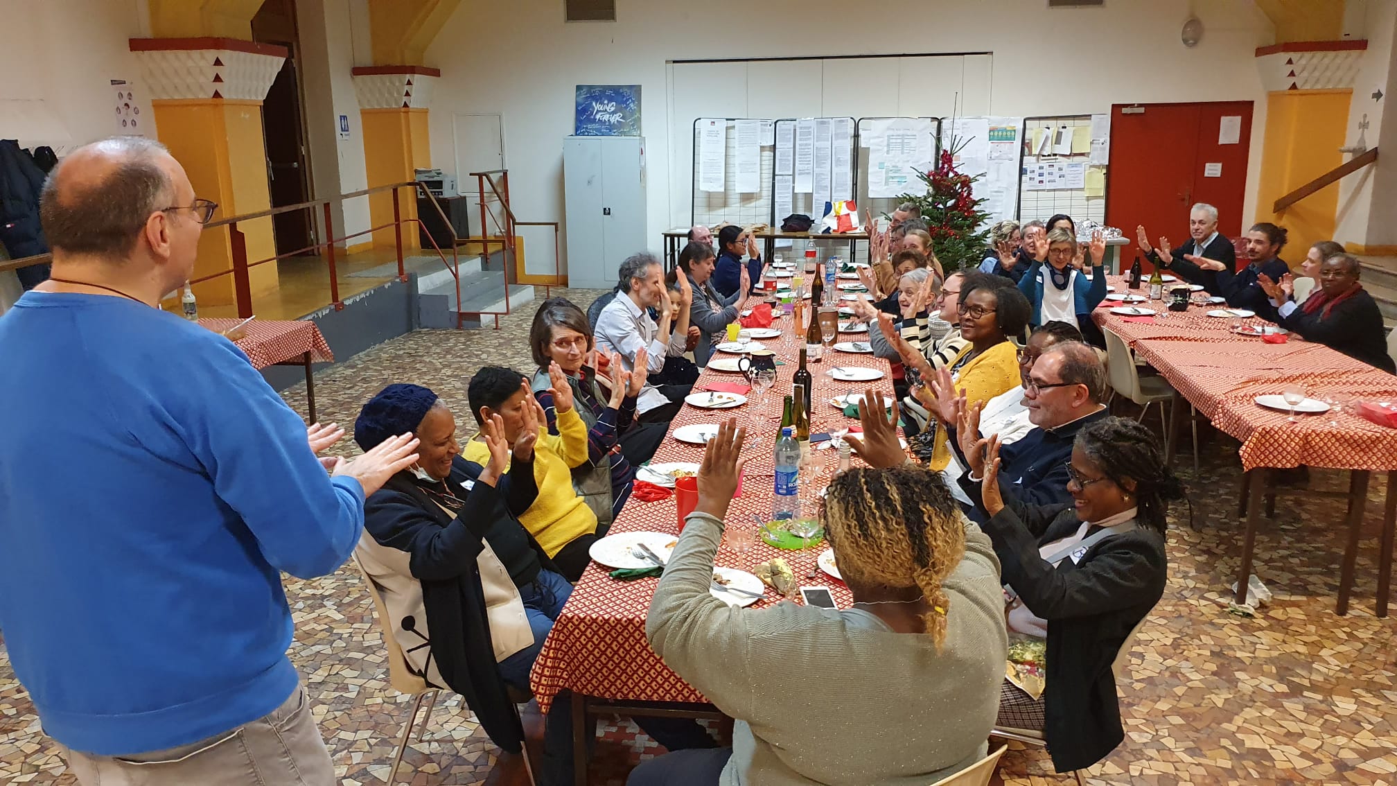 Pour la quatrième année consécutive, la paroisse St Jean Bosco a proposé à celles et ceux qui le désiraient de se retrouver pour vivre ensemble le réveillon de fin d’année. La soirée a commencé par la dernière Eucharistie de l’année, animée musicalement par trois jeunes étudiants, animateurs du MEJ, Mathilde, Eugénie et Quentin.