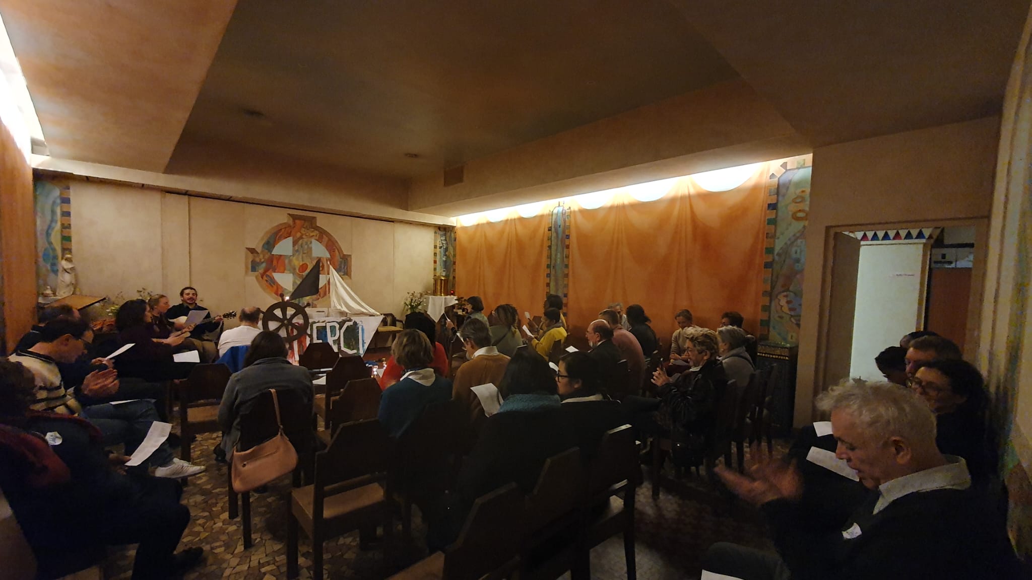 Avant le passage à l’an neuf, nous nous sommes embarqués avec Zélie pour un temps de prière et une relecture de l’année vécue à travers le triptyque « Merci, Pardon, S’il te plaît ». Nos trois musiciens de la soirée avaient ainsi préparé un joli bateau qui a évolué au fil de la soirée jusqu’à briller de mille feux par la lumière des bougies de chacun en nous invitant à devenir des « allumeurs d’étoiles ».